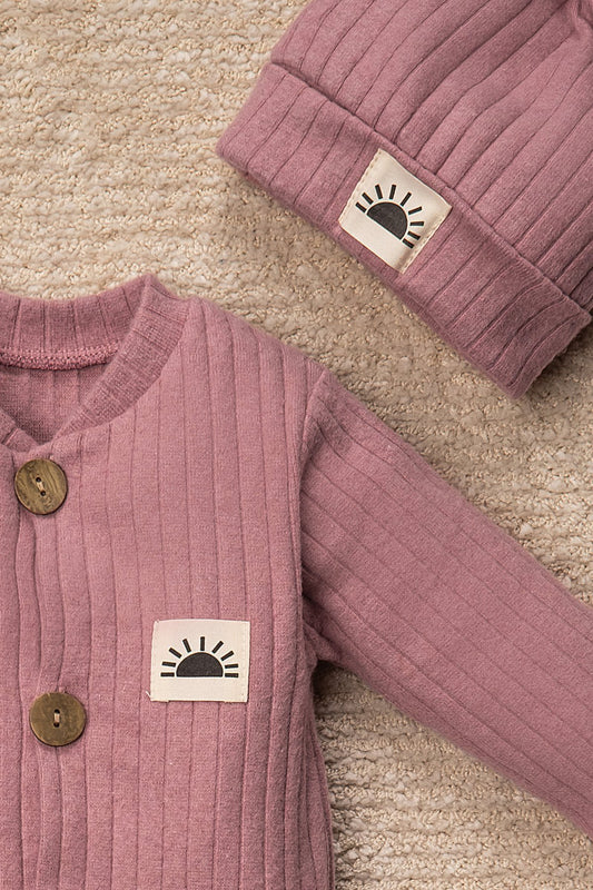 Gülen Yüz Desenli Şapkalı Bebek Tulum